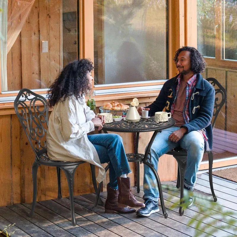WEATHER-RESISTANT: This patio bistro set is made from sturdy and solid cast aluminum, so it’s resistant to rust, weather, fade, chip or crack. With durable antique bronze finish and carefully burnished spotwelds, it can last season after season