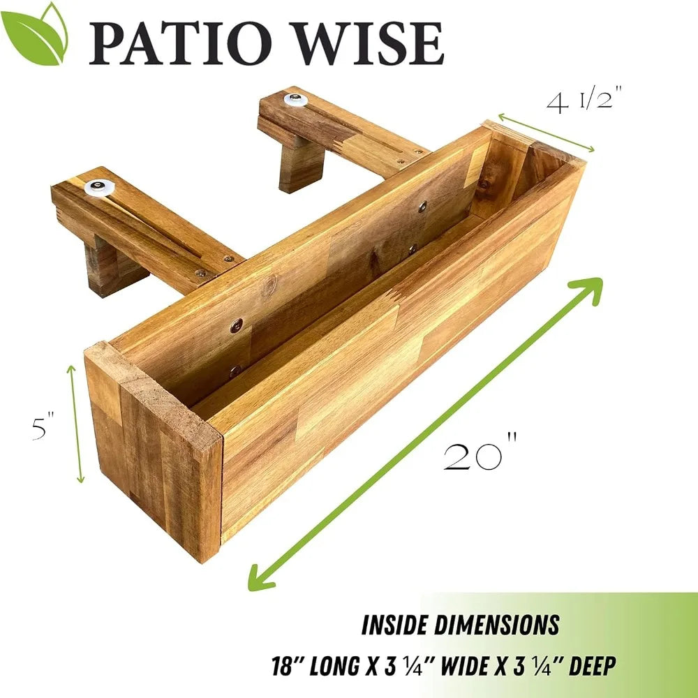 Acacia Wood Railing Planter Box, Outdoor Hanging Flower, Plant, & Herb Boxes, 20-Inch Wide x 5-Inch Tall x 4.5-Inch Deep Rectang