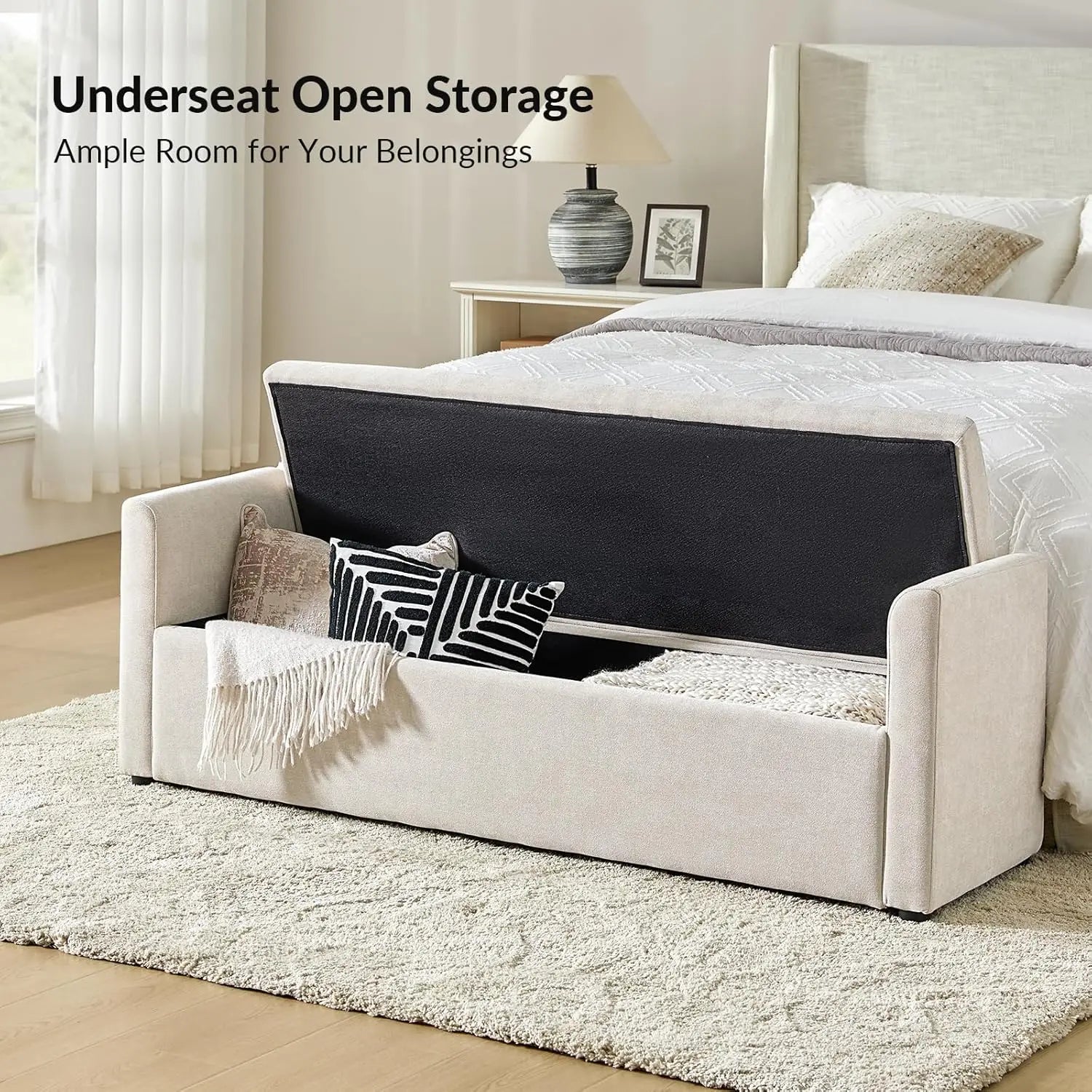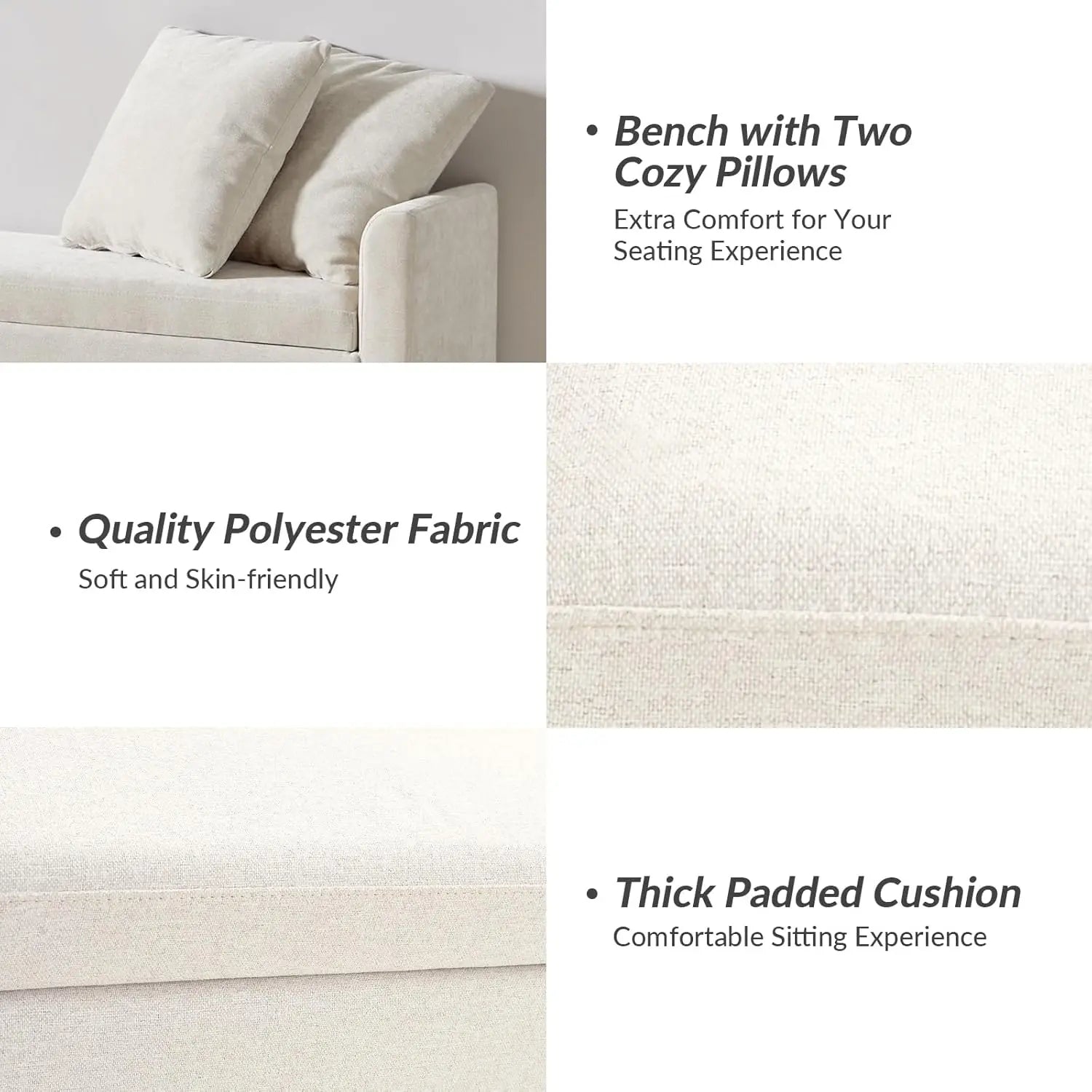 HOME Modern Storage Bench with Throw Pillows, 59.4" Extra Long Bedroom Ottoman Bench for End of Bed, Comfy Upholstered Footstool